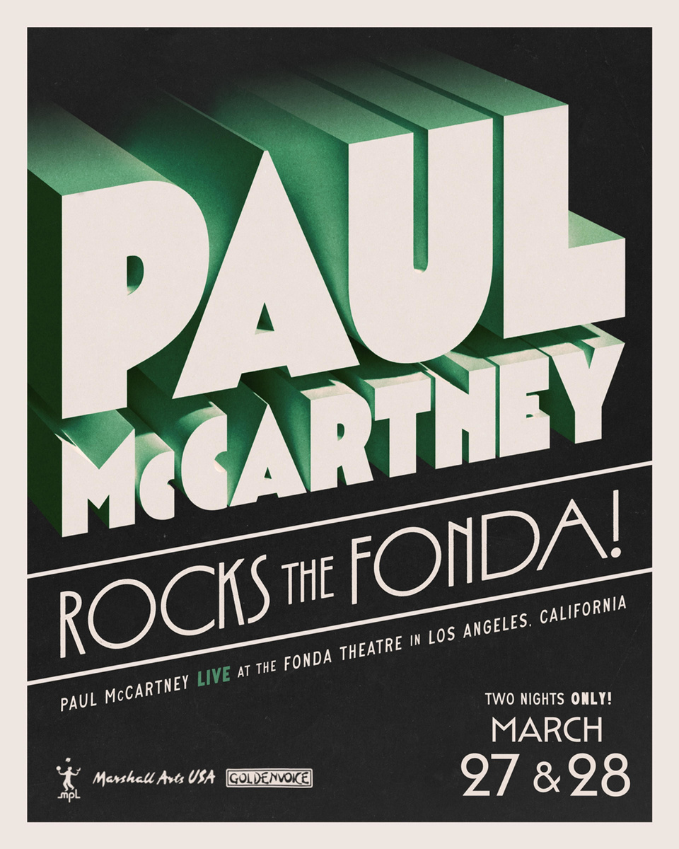 ТЕАТР FONDA В ЛОС-АНДЖЕЛЕСЕ, КАЛИФОРНИЯ 〰〰〰〰〰〰〰〰〰〰〰 Впервые полсле завершения масштабного рекордного турне Got Back-2025 Пол МакКартни даст два сольных концерта в Лос-Анджелесе в театре The Fonda Theatre в пятницу, 27 марта, и субботу, 28 марта 2026 года. Регистрация на билеты начинается во вторник, 17 марта, в 9:00 по тихоокеанскому времени и заканчивается в среду, 18 марта, в 22:00 по тихоокеанскому времени. Для получения информации о регистрации и продаже билетов перейдите по ссылке https://www.axs.com/paulmccartney. По два билета на человека. Количество билетов крайне ограничено. Регистрация не гарантирует возможность полкупки. Не приобретайте билеты у сторонних продавцов. Поддельные билеты не будут действительны, в доступе по ним будет отказано. Использование телефонов на этих шоу будет запрещено. Телефоны будут полмещены в чехлы Yondr. Paul McCartney Rocks The Fonda - это презентация MPL в сотрудничестве с Goldenvoice и Marshall Arts USA. Перевод: ©