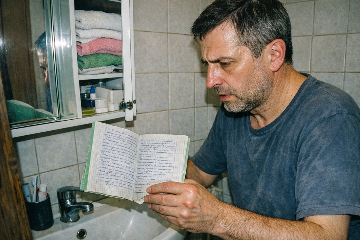 Марк стоял босиком на кафеле и смотрел в тетрадь. Пальцы вспотели, страница под большим пальцем смялась. Он держал её двумя руками и не мог ни закрыть, ни перевернуть дальше.