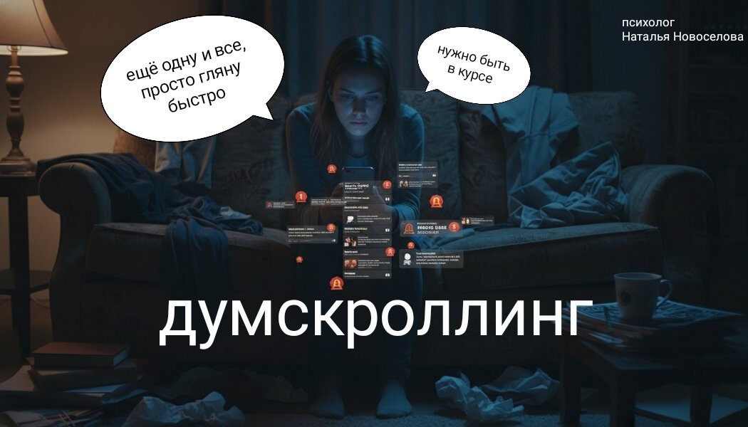 Вы ложитесь в постель, планируя почитать 10 минут, и внезапно обнаруживаете, что на часах два часа ночи, а вы до сих пор листаете ленту. Или открыли новости посмотреть погоду, а вышли оттуда с экзистенциальным кризисом и твёрдым мнением о геополитике. Знакомо? Это думскролинг - навязчивое поглощением плохих новостей, от которых невозможно оторваться. В своей практике я часто вижу людей, чье внимание съедено этим процессом. Кажется, что если мы прочитаем еще одну статью, то будем лучше готовы к опасностям. На деле всё наоборот: мозг застревает в потоке негативной информации. «Я просто хотела проверить новости, а потеряла два часа жизни» «Чем хуже становится, тем больше я скролю» «Листаю ленту и не могу остановиться, хотя мне уже плохо» Наш мозг эволюционно заточен на поиск угроз. В древности заметить шорох в кустах значило выжить. Сегодня «шорох» - это заголовки новостных лент. Организм выбрасывает кортизол, мы чувствуем тревогу и... ищем новую порцию информации, чтобы ее унять. Но это