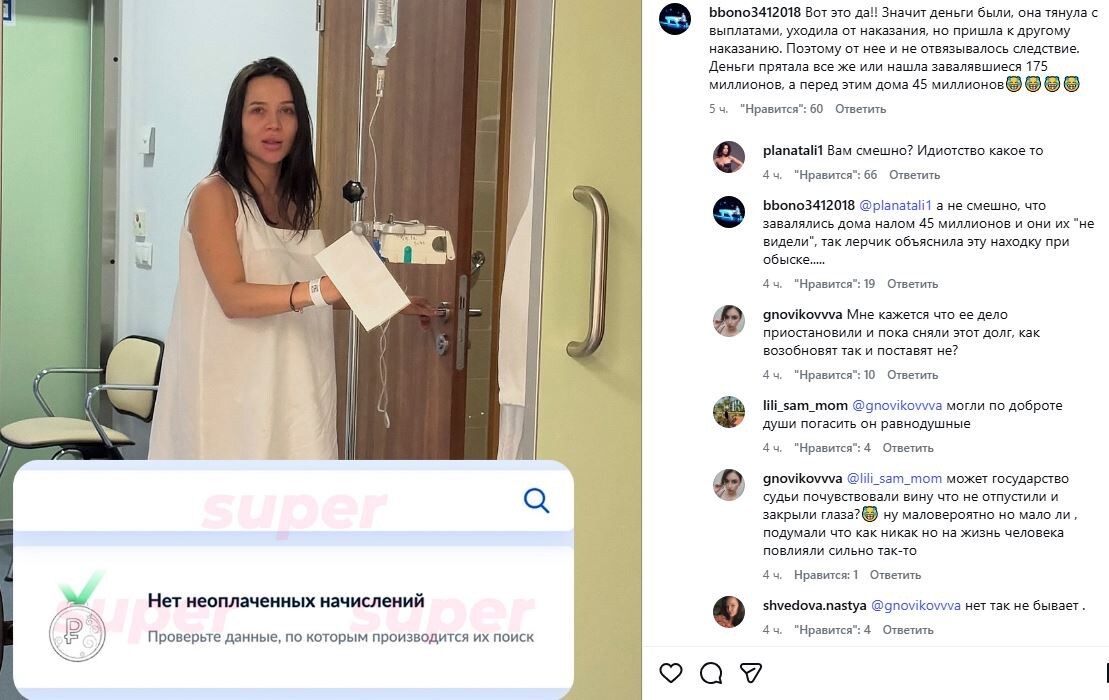 Люди, которые привыкли доверять картинке в соцсетях, начали искать логические нестыковки. Один из читателей пишет: «Если ситуация такая непростая, зачем в первую очередь платить 170 миллионов налоговой? Семье бы оставили». И в этом есть своя правда. В обычном мире мысли человека в такой момент заняты совсем не сверкой платежей в личном кабинете налогоплательщика. Но в мире крупных блогеров логика, видимо, иная: сначала — финансовая свобода, а потом всё остальное. Возможно, расчет на то, что решать вопросы со здоровьем гораздо комфортнее без юридических обременений и границ.