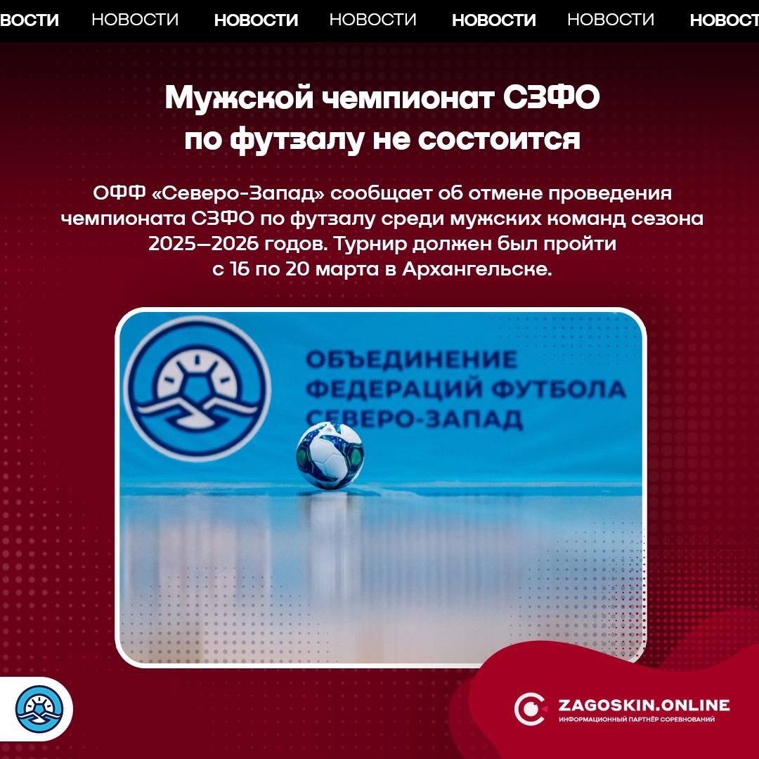 Мужской чемпионат СЗФО по футзалу не состоится ОФФ «Северо-Запад» сообщает об отмене проведения чемпионата СЗФО по футзалу среди мужских команд сезона 2025–2026 годов. Турнир должен был пройти с 16 по 20 марта в Архангельске. В прошлом сезоне чемпионом СЗФО впервые стала архангельская «Армида». С учетом этого фактора ОФФ «Северо-Запад» приняло решение о проведении чемпионата в Архангельске. В ходе заявочной кампании большинство клубов в силу разных причин отказались от участия в соревновании. Мужской чемпионат СЗФО по футзалу проводится с 1993 года. За 33-летнюю историю соревнования это лишь третий случай его отмены — предыдущие произошли в сезонах 2005–2006 и 2015–2016 годов. В трех предыдущих чемпионатах участвовали по восемь клубов. В прошлом сезоне турнир проходил в Санкт-Петербурге, до этого дважды — в Великом Новгороде. Николай Голубев, президент ОФФ «Северо-Запад»: — Формирование состава участников, надо признать, довольно непредсказуемая вещь. Если в ряде турниров 2026 го