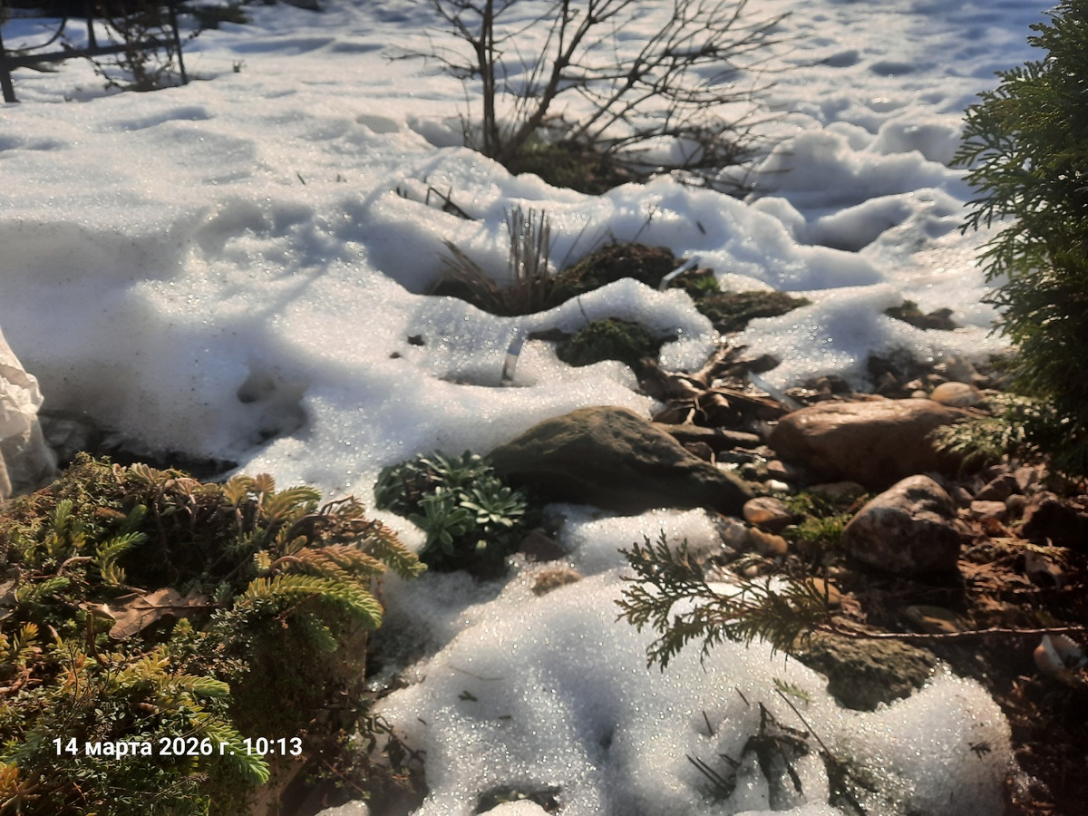 Жизнь продолжается! Какой она будет через пару недель, даже представить сложно. Спальные места закуплены, приедут в субботу. Муж перетащил кожаный диван на второй этаж, убрал еще кое-что. Диван пришось заносить через окно! Спасибо членам мужского банного клуба! А я маму обхаживаю. Тревожно ей, страшно! Из своего-то дома! 45 лет в этой квартире прожито! У меня голова пока что кругом! А камнеломки за неделю совсем оттаяли, наверное! Но я мужа дергать по этому поводу не хочу, хватает у него сейчас хлопот! Так что полюбуемся недельной давности фотографиями! Ровно неделю назад снега на моих склонах и в низинке было еще достаточно. Но камнеломка уже умудрилась оттаять! Такие красавчики! Светик! Это твоя красненькая! Помнишь, которую подарила пару лет назад! А это наверное метельчатая. Она у меня куполом растет! Вот еще семейка, на камнях перезимовавшая. На солнце быстро из-под снега выбралась. Здесь солнца поменьше. А снег уже тает-тает! Эта из новеньких. И вообще может быть это не камне