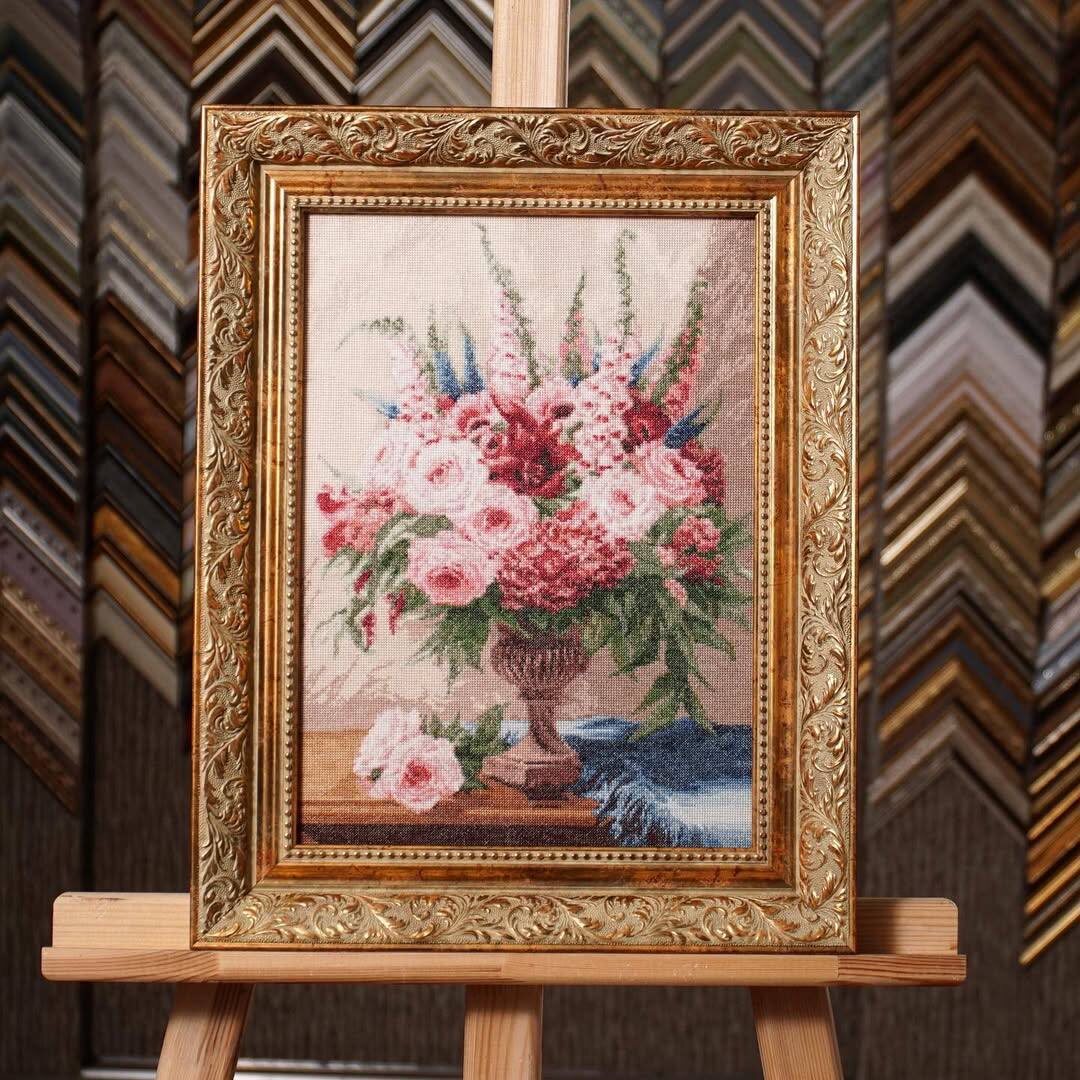 красотой. 😍 Гармоничное сочетание нежных розовых и алых оттенков создает ощущение легкости и романтики. Эта вышивка превратит любой интерьер в уютное и изысканное пространство. 🌸