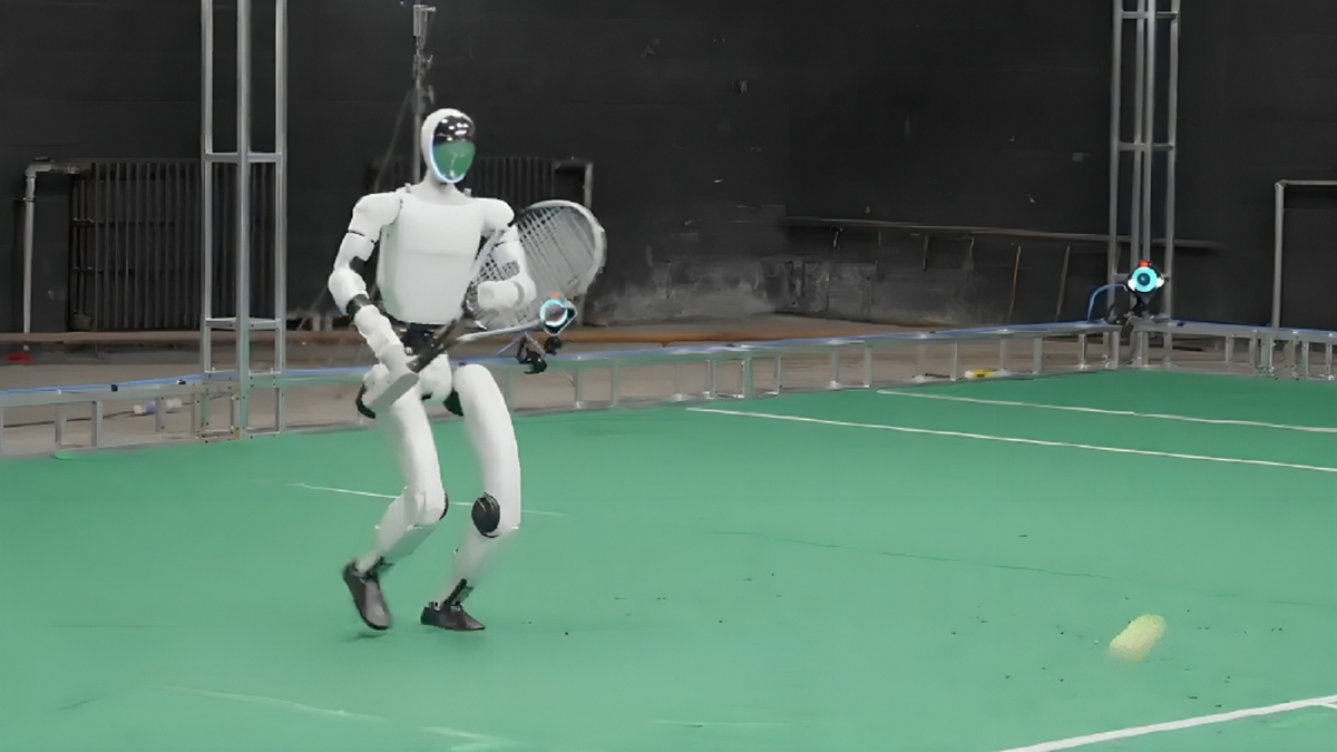 Компания Galbot Robotics показала видео, на котором человекоподобный робот Unitree G1, обученный по новой методике LATENT, играет с живым соперником, перемещается по корту и стабильно возвращает мячи. В симуляции точность ударов справа достигла 96%. Проблема спортивной робототехники в том, что снять идеальные движения человека для обучения практически невозможно. Теннис особенно сложен: игроки бегают по всему корту, мячи летят до 30 м/с, а контакт с ракеткой длится миллисекунды. Исследователи из Galbot, Университета Цинхуа и Пекинского университета пошли другим путем. Они не стали записывать полные матчи, а собрали короткие фрагменты основных движений: удары справа, слева, боковые шаги. Пять игроков натренировали систему на корте размером 3×5 метров — в 17 раз меньше стандартного. Получилось всего пять часов записей, но этого хватило. Сначала робот учился повторять отдельные действия. Потом их объединили в последовательности: добежать до мяча, ударить, вернуться в позицию. Модель трени