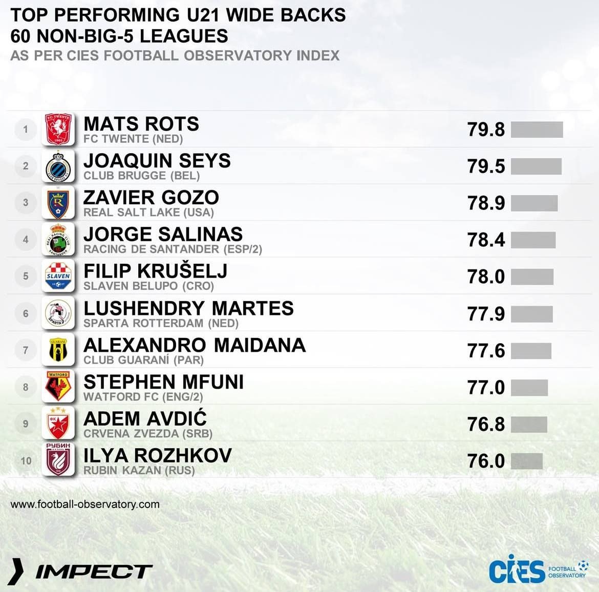 Рожков в топ-10 лучших молодых крайних защитников мира без учета игроков из топ-5 лиг - CIES