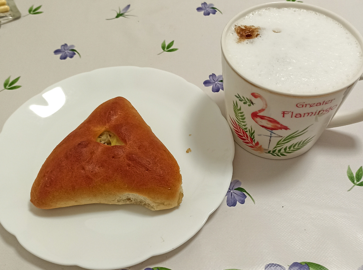 Утром доедали эчпочмаки. Достала из холодильника, разогрела в микроволновке.