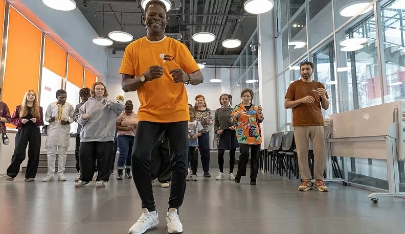 – По дороге в Калугу я задумался, что вам предложить, потому что в Африке много таких танцев, в которых задействовано все тело, а это может быть сложно и тяжело для начинающих. Поэтому мы начнем с того, что попроще, и, если это вызовет интерес, потом продолжим и будем организовывать другие мастер-классы с нашими преподавателями из стран Африки, которые живут в Москве. У нас есть большое желание показывать африканскую культур
