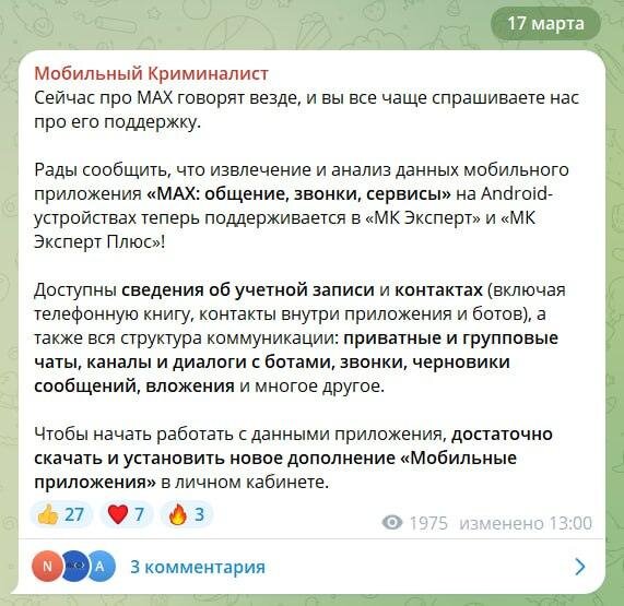 ➡️ Телеграм канал SvodkaPress Мессенджер MAX, популярный среди миллионов пользователей и даже государственных структур, оказался жертвой серьёзного взлома. Эксперты из МКО «Система» разработали софт, который способен извлечь практически все данные из аккаунта: контакты, переписки, каналы, черновики сообщений и даже звонки. Самое пугающее — инструмент работает даже в режиме оффлайн, когда устройство выключено или находится в режиме ожидания. Эта ситуация ставит под сомнение саму концепцию приватности в цифровую эпоху. Мы привыкли думать, что наши данные защищены, но теперь это уже не так. Особенно тревожно для тех, кто использует MAX для обмена конфиденциальной информацией. Государственные структуры, вероятно, уже используют этот инструмент для своих целей, что вызывает вопросы о балансе между безопасностью и приватностью. Эта история — ещё одно напоминание: будущее, где приватность становится иллюзией, уже наступает. Нам нужно пересмотреть своё отношение к цифровой гигиене и, возмож