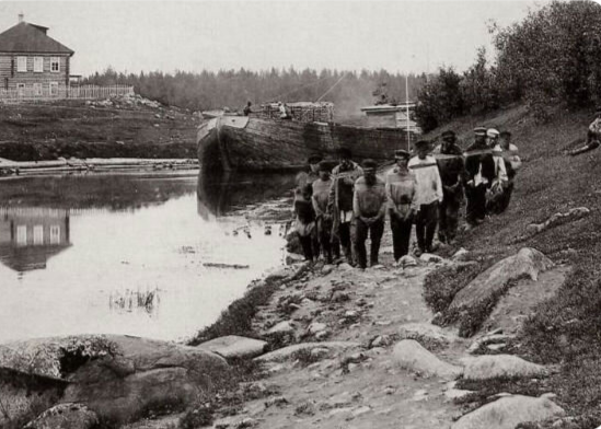 До эпохи паровых двигателей главной движущей силой речного транспорта в России были люди. Десятки тысяч бурлаков каждую весну, едва сходил лед, выходили на берега Волги, чтобы впрячься в лямку и тянуть суда вверх по течению. Их труд был адским, жизнь — подневольной, а профессия — обреченной на исчезновение. На севере бурлаков называли «ярыгами» или «ярыжками». Лингвисты выводят это слово из двух корней: «ярило» (солнце) и «га» (движение, дорога). Солнечные люди, вечно идущие против течения — красивая, хоть и горькая этимология. Артели формировались стихийно. После ледохода по деревням, стоящим на берегах больших рек, прокатывалась волна желающих наняться. Шел туда народ отчаянный: потерявшие хозяйство крестьяне, любители вольной жизни, те, кому нечего было терять. Но прежде чем стать полноправным членом артели, новичок должен был пройти обряд посвящения. По всей Волге — от Ярославля до Астрахани — было с десяток мест, которые назывались «Жареными буграми». Это высокие крутые берега, г