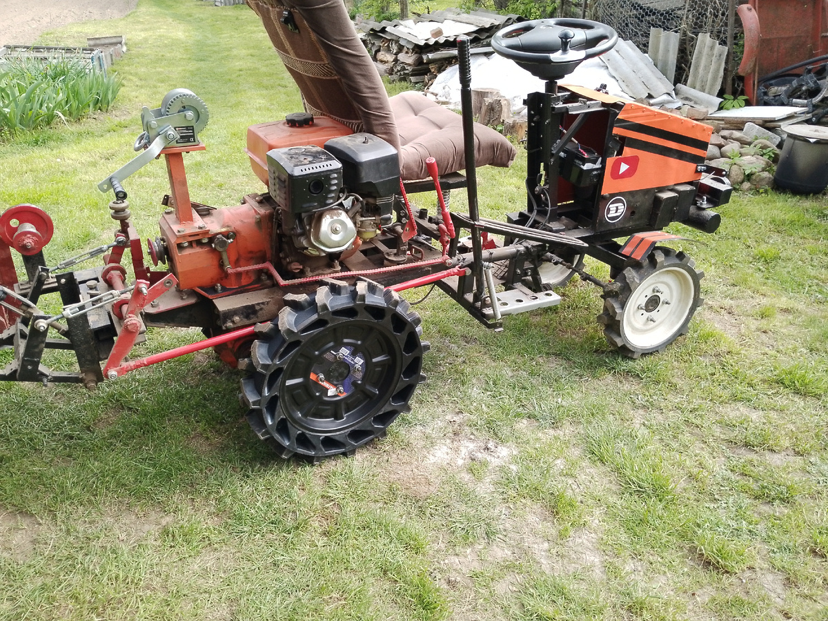Раму можно сделать из уголков «6» или труб диаметром 45 мм. Для того чтобы конструкция была более устойчивой и прочной, по углам привариваются металлические пластины (толщина 6 мм). КПП можно взять от ВАЗа. Важно, чтобы в его рабочем состоянии было хотя бы три скорости передних и одна – задняя. Тягу можно «позаимствовать» от мотоколяски. Рулевая колонка подойдет вполне от отечественного авто типа «Запорожец». Также реально сделать мини-трактор с разными движками – как одноцилиндровым с воздушным охлаждением, так и четырехтактным карбюраторным. Такие силовые установки идеально подходят для создания сельхозтехники.