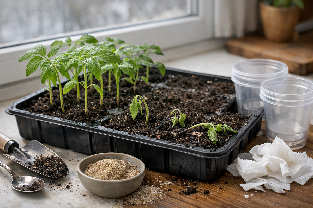 Важно - не лечить всё только “чем-нибудь полить”. Когда рассада погибает у основания, проблема почти всегда не в том, что ей чего-то не хватило, а в том, что было слишком мокро, душно и тесно. Сначала убираем сырость и заражённые растения, потом уже думаем про остальное. Не наоборот.