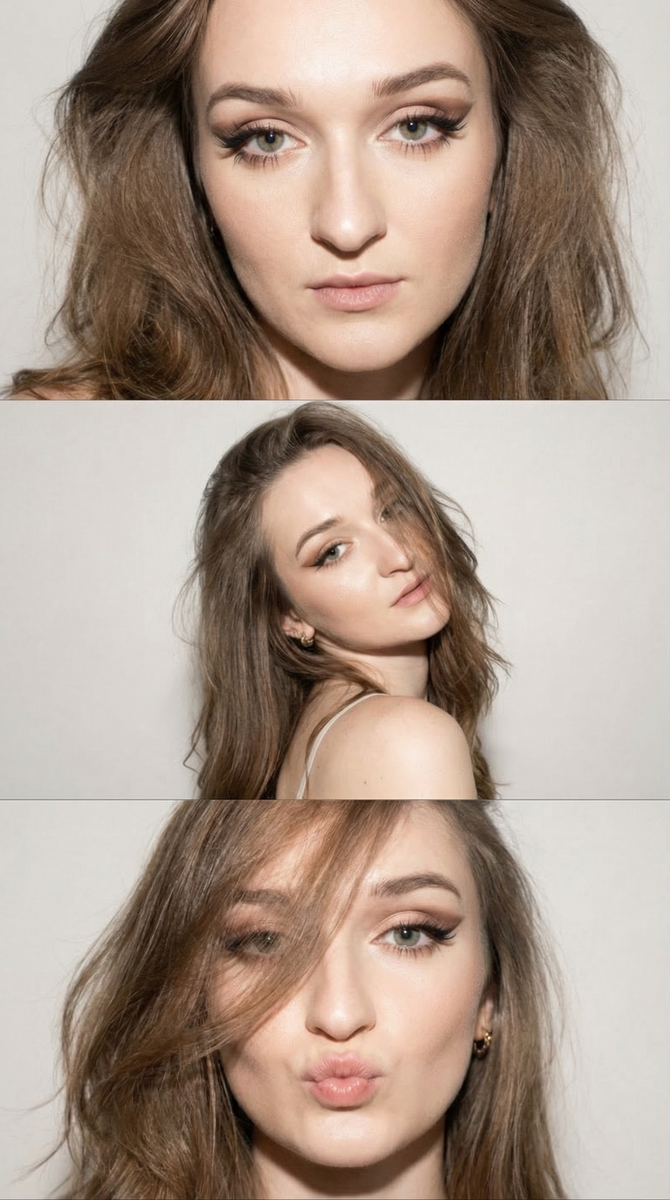 Думаю, что большинство из вас уже видели трендовые ИИ коллажи на просторах социальных сетей. Рассказываю, как сделать такой же и пополнить коллекцию свих красивых нейрофотографий. Кадры, кстати, получаются очень реалистичные 😉 В каких нейросетях можно сделать ИИ коллаж: Нейросетевые коллажи - это настоящий тренд ИИ. Они очень хорошо смотрятся в stories и shots в социальных сетях. Бонусом - вы сможете адаптировать любой из промптов под себя - поменять макияж, прическу, одежду и многое другое. Ниже - самые трендовые промпты для генерации ИИ коллажей. Промпт №1 Вертикальный триптих в эстетике Y2K. Один персонаж на светлом, чистом фоне, без лишних объектов. Модель — девушка с пышной, объемной укладкой, напоминающей салонный брашинг. Макияж в стиле «fox eyes»: вытянутые стрелки, акцент на внешние уголки глаз, густые выразительные ресницы. Композиция из трёх кадров: Первый кадр — экстремально крупный план, лицо максимально близко к объективу, прямой уверенный взгляд в камеру. Второй кадр —