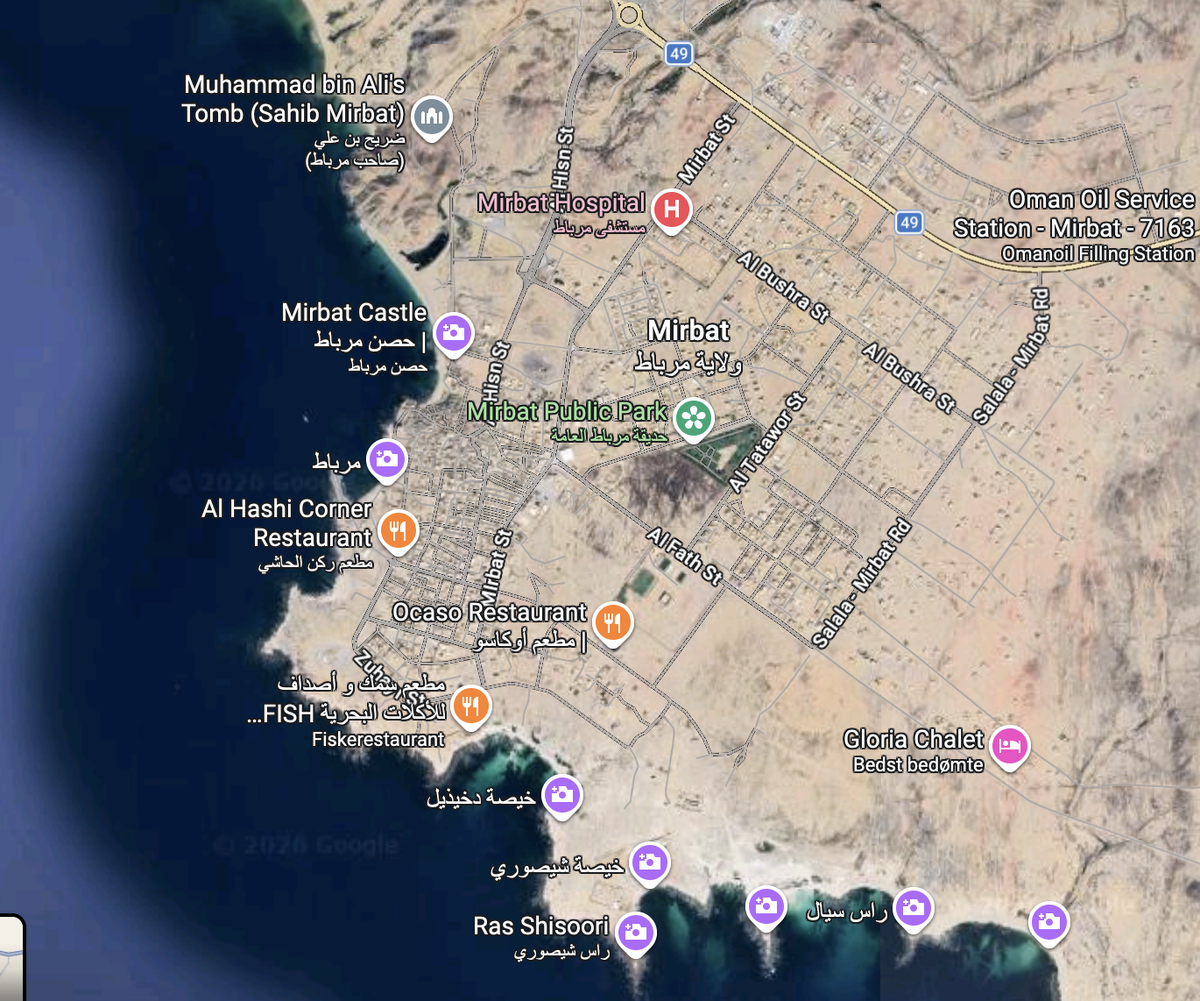 Есть там небольшой городок Мирбат, ничем не примечательный, кроме небольшой крепости, стоящей на берегу моря.