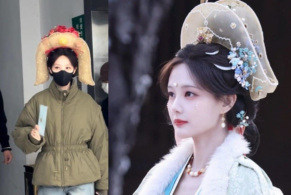 Два крыла, обнимающие лицо: необычный головной убор Ли И Тун на съёмках дорамы «Золотая ветвь»
