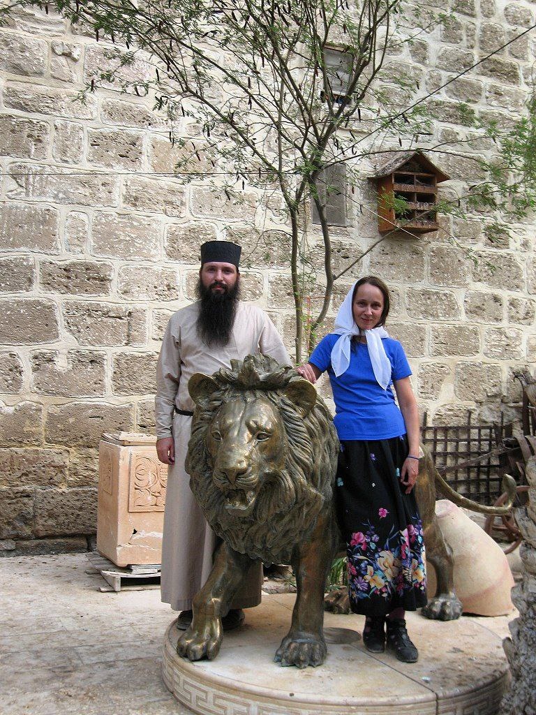 монахи умирали ежедневно для мира и жили в строгом послушании. Особое место в его житии занимает райское единение творения, когда даже дикие звери становились как ручные. У Герасима был огромный лев, который приходил к трапезе за хлебом, и осёл, пасшийся неподалёку и таскавший воду для монастыря. Однажды осёл пропал — его утащили разбойники из близлежащей пещеры, чтобы работал на них. Лев, скорбя, отказывался есть, бродил как потерянный, пока не привёл братию к пещере разбойников. Те, увидев монахов и рыкающего льва, перепугались, вернули осла целым и невредимым, а заодно принесли покаяние: попросились в монастырь. Так лев не только нашёл друга, но и стал орудием Божьим для спасения душ. После кончины Герасима лев оплакивал святого и вскоре умер у его гроба. «Блаженны кроткие, ибо они наследуют землю» (Мф. 5:5), — напоминает нам это чудо о Царстве, где волк будет пастись с агнцем (Ис. 11:6). #житие #ГерасимИорданский Фото: монастырь прп. Герасима 2012 г. Подписывайтесь в МАХ чтобы