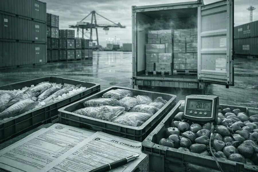 Для доставки в удалённые регионы часто применяется мультимодальная схема: морской рефрижераторный контейнер прибывает в порт, продукция перегружается в рефрижераторную фуру или на железнодорожную платформу и отправляется вглубь страны. Критически важный момент при перегрузке — не допустить разрыва холодовой цепи. Для этого операция должна проводиться на оборудованных складах с крытой рампой, исключающей контакт продукции с тёплым наружным воздухом.