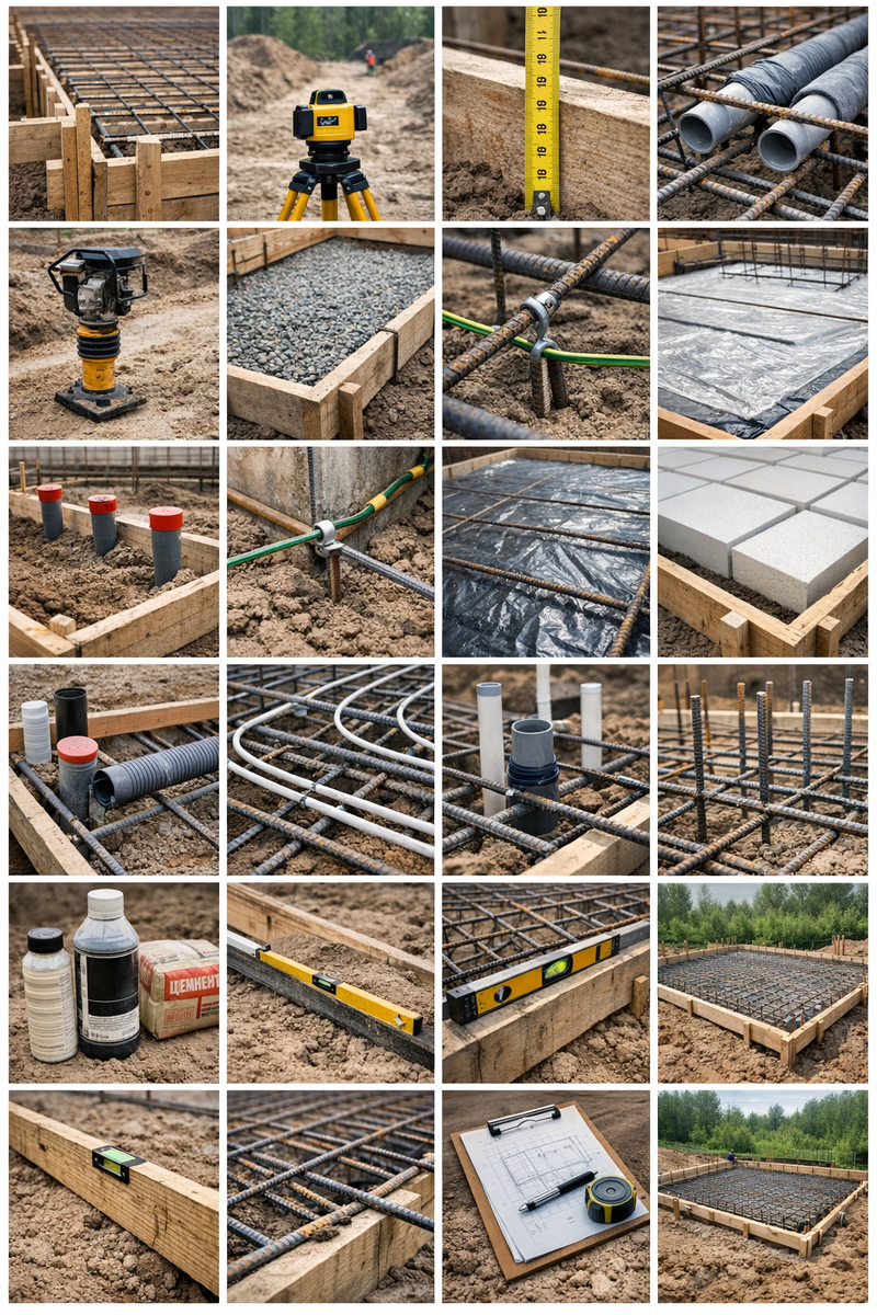 Если собрать всё по практике, у хозяина перед бетоном должны быть: 4 фото общих углов, 2 фото длинных сторон, 4 фото узлов армирования, 3 фото нахлёстов и усилений, 3 фото фиксаторов и защитного слоя, 4 фото гильз и вводов. Вот Вам и 20 кадров, которых обычно достаточно, чтобы приемка фундамента была не на доверии, а на фактах.