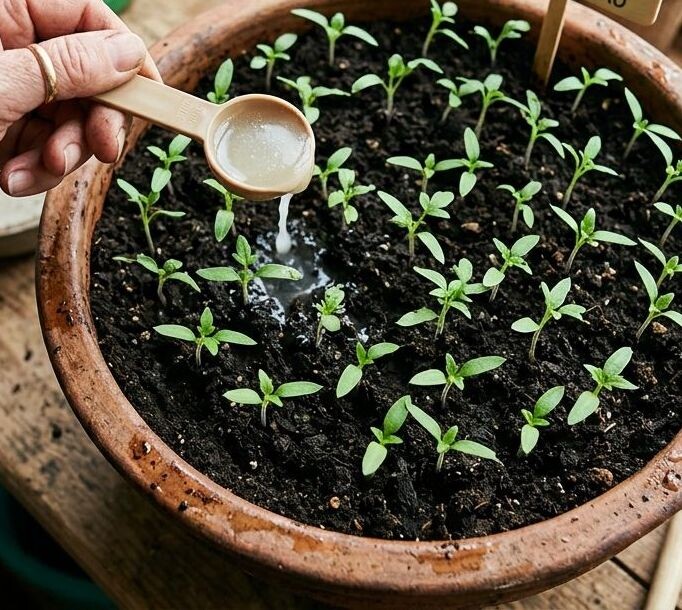 Если рассада бледная, тонкая и стоит на месте — это сигнал острой нехватки азота. Нашатырь усваивается моментально.