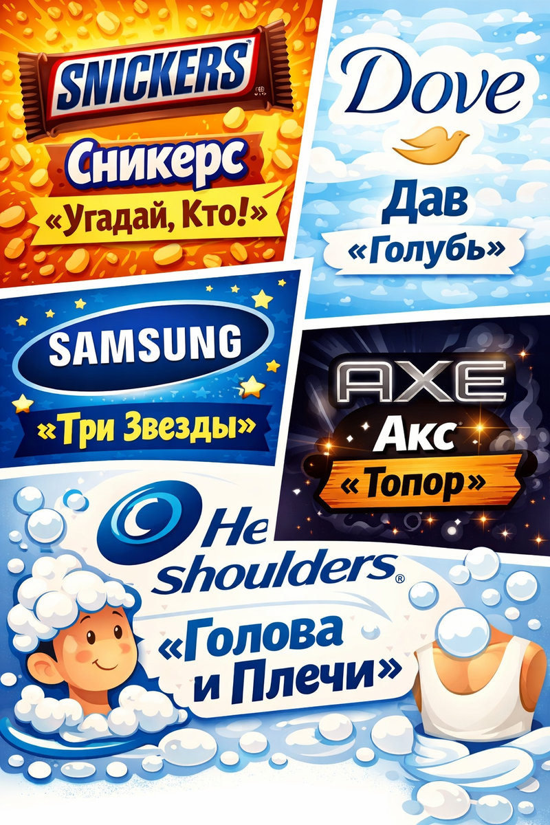 Представьте, что вы заходите в магазин и просите продавца: «Дайте мне, пожалуйста, шампунь "Голова и плечи", а на десерт — шоколадки "Щедрость" и "Ржания"». Звучит странно? А ведь именно так дословно переводятся Head & Shoulders, Snickers и Bounty.