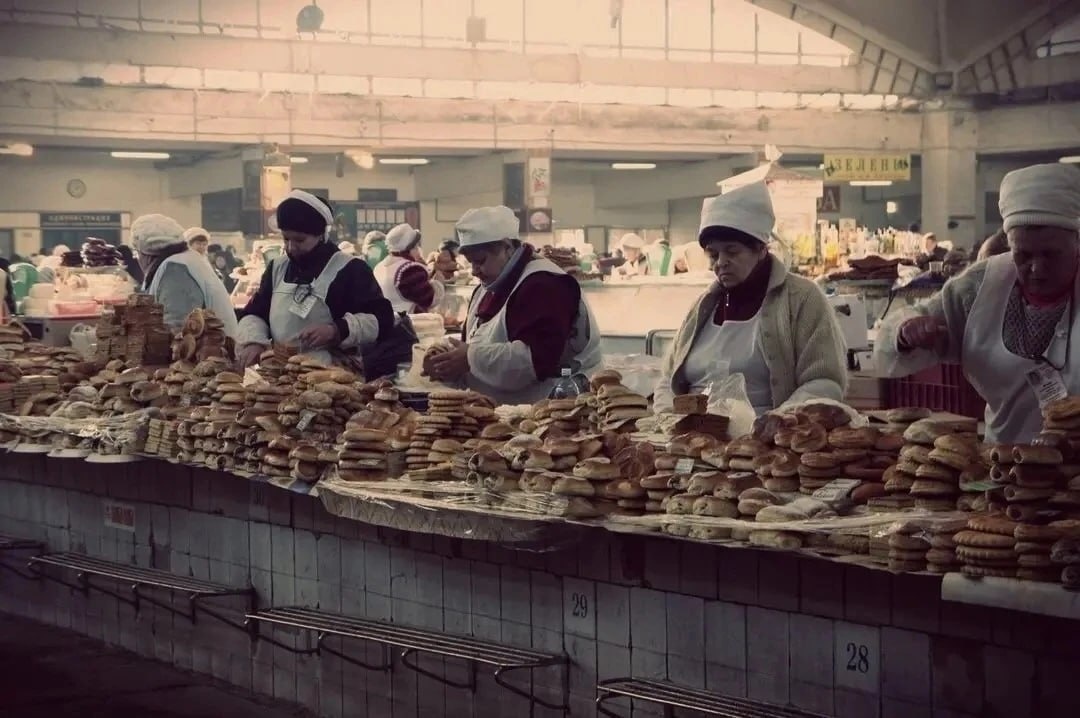 ▪️ Фото с запахом. Ряд с выпечкой на городском рынке в центре Калуги, 2010г.