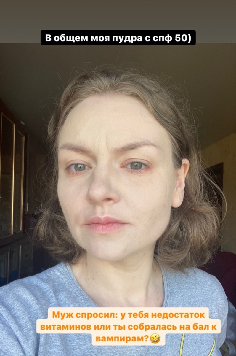 Минеральные фильтры — оксид цинка и диоксид титана — это белые порошки. Чтобы обеспечить защиту уровня SPF 50, их нужно ввести в состав примерно в 50% концентрации. То есть половина вашей пудры будет белым порошком. Результат предсказуем: не красивое покрытие, а белая маска на лице. Несколько лет назад я проходила обучение по созданию минеральной косметики и ради эксперимента сделала пудру с спф 50. Результат на фото😁