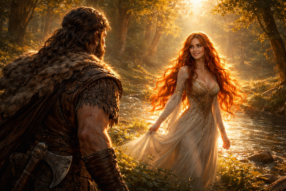 — Там она... Боги... — голос Эйрика дрогнул, в нем появилось благоговение. — Волосы как пламя костра в ночи. Глаза... в них можно утонуть, как в море. Она улыбнулась мне, и я... я перестал быть воином. Я стал просто мужчиной, который хочет смотреть на неё вечность.