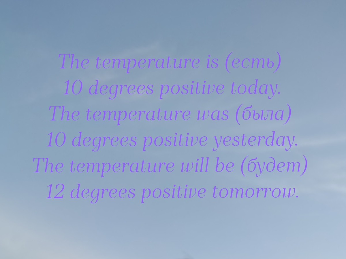 The temperature is 10 degrees positive today. Температура сегодня (есть) 10 градусов выше нуля.