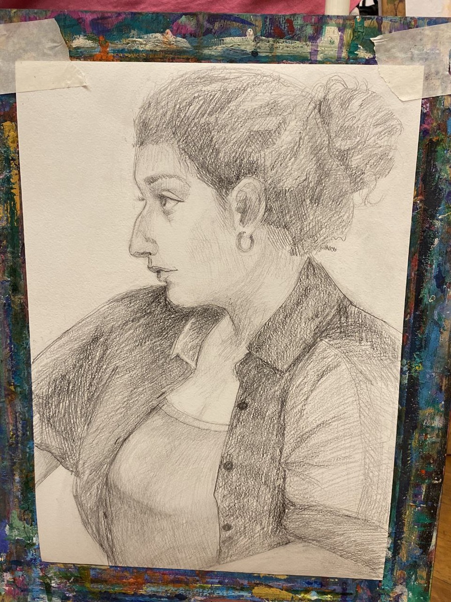 Хвастаемся портретом, который нарисовала с натуры наша ученица Кристина из группы подготовки. Ей, кстати, всего 15 лет! Если вы сразу подумали, какая Кристина талантливая, то мы с вами, конечно, соглашаемся ─ у нас вообще все такие, все талантливые :) Но интересно, что когда мы чуть раньше с Кристиной работали над тональными зарисовками пейзажей: А на прошлой неделе Кристина сама предложила порисовать портрет, ещё и с натуры. Даже не гипсовую голову! Поначалу эта идея казалась безумной, ведь если ты пока не разобрался, почему деревья темнее чем небо, то уловить с натуры человека самые нюансные переходы тона будет ещё сложнее. Этапы принятия портрета были такими: Это мы к чему: если что-то не получается, может, просто тема вам не подходит, а подступись вы с другого уголка, сразу талант проявится :)