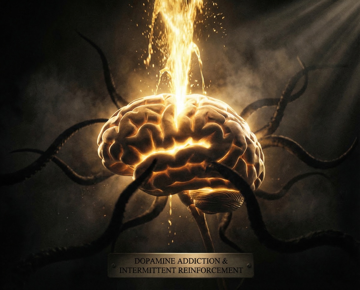 Жертва попадает в дофаминовую ловушку: она живёт от одного "хорошего" момента до другого, и каждый такой момент подкрепляет зависимость.