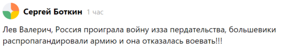 Та статья была моим ответом на обвинения антисоветчиков в сторону большевиков в разложении царской армии…