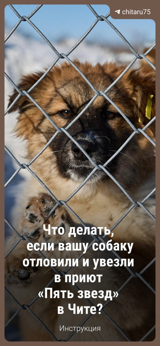 ? В пресс-службе мэрии @chita.ru рассказали, что делать, если собака потерялась, а у владельца есть подозрение, что ее отловили и отвезли в читинский приют «Пять звезд».⬆️ 🟦 «Чита.Ру» в МАХ