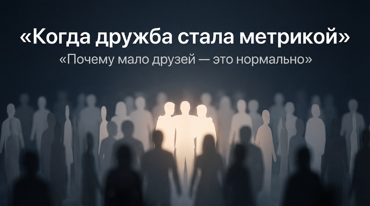 Если снять тревогу «я недостаточно окружён людьми», открывается простая вещь: дружба — это не про количество. Это про качество присутствия. Позвонить, когда не нужен повод. Выдержать чужую боль, не пытаясь её починить. Быть рядом — не как функция, а как человек.