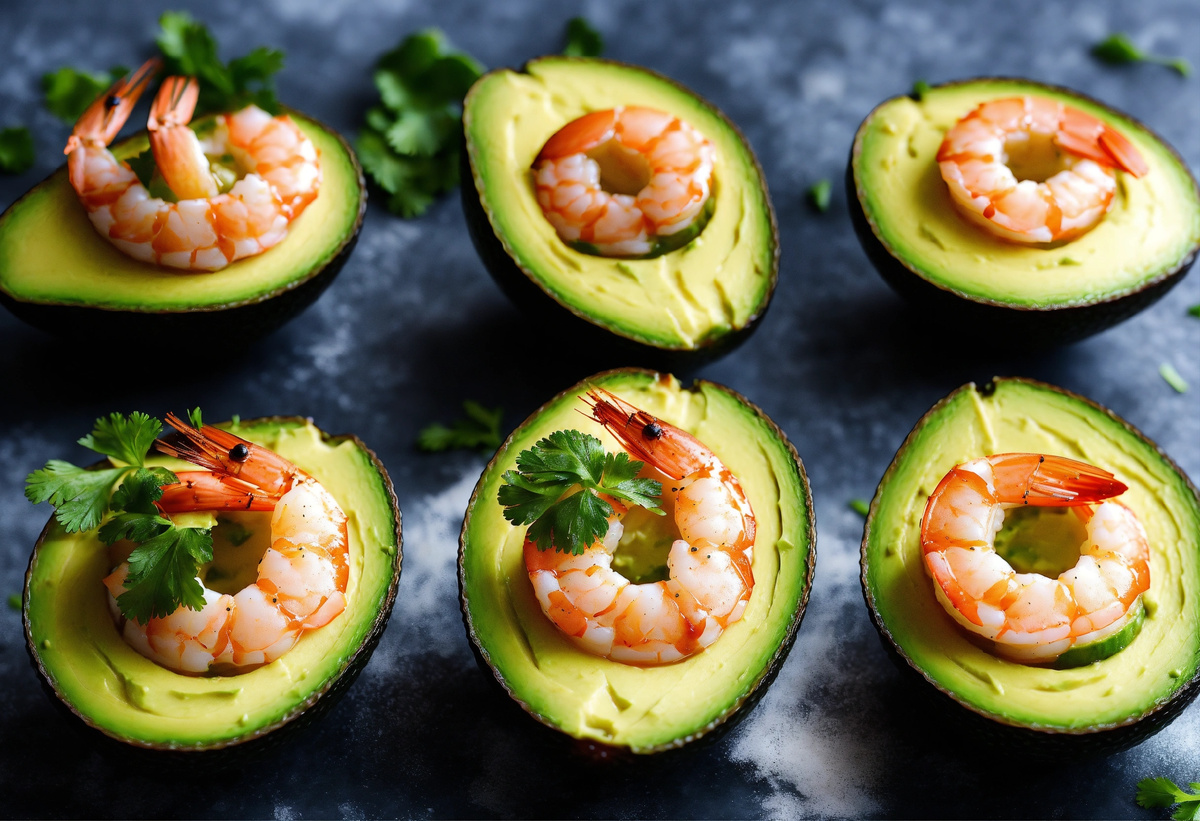 - Снэк: Авокадо с креветками и соусом из лайма.