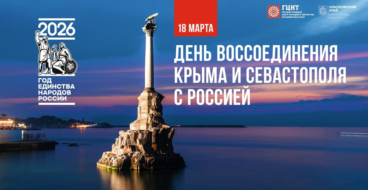 ! 🇷🇺 18 марта — дата, которая навсегда вписана в историю нашей страны золотыми буквами. 12 лет назад произошло событие, основанное на воле миллионов людей, — Крым и Севастополь вернулись в родную гавань. Крым — это не только стратегический рубеж и база Черноморского флота. Это уникальный сплав культур, история которого неразрывно связана с Россией с XVIII века. Это земля, вдохновлявшая Пушкина и Бунина, ставшая домом для Айвазовского и Чехова. Этот день — символ нашей общей гордости, единства и исторической справедливости. Желаем всем мира, добра и процветания! ❤️ 📢 Подписывайтесь на нас в MAX #КрайВысокойКультуры #культураКрасноярья
