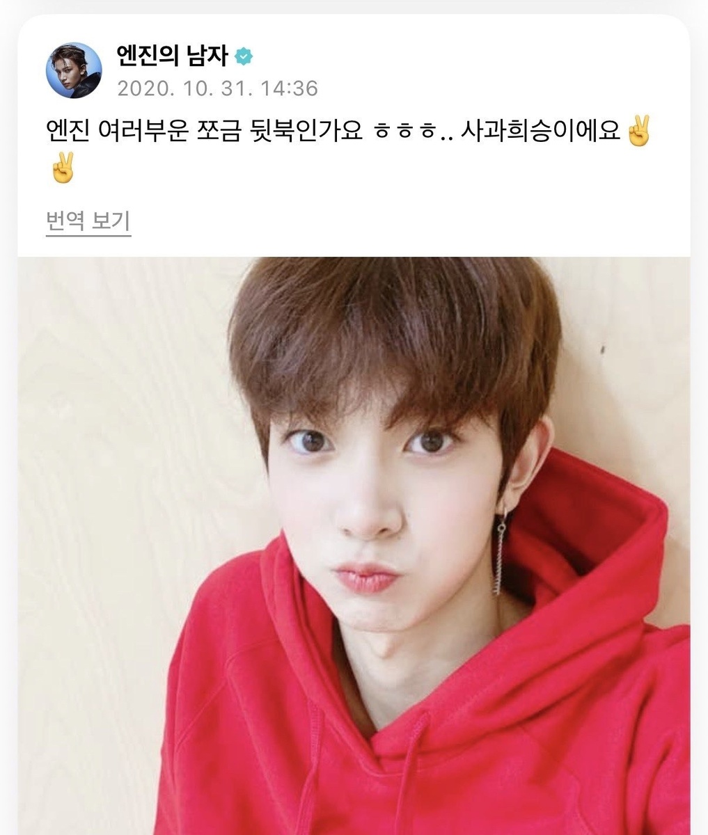 "Энджини, я опоздал?ㅎㅎㅎ.. Простите"