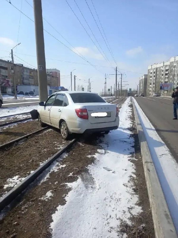 Автомобиль вылетел на трамвайные пути. Закрыто движение трамваев в сторону Депо.