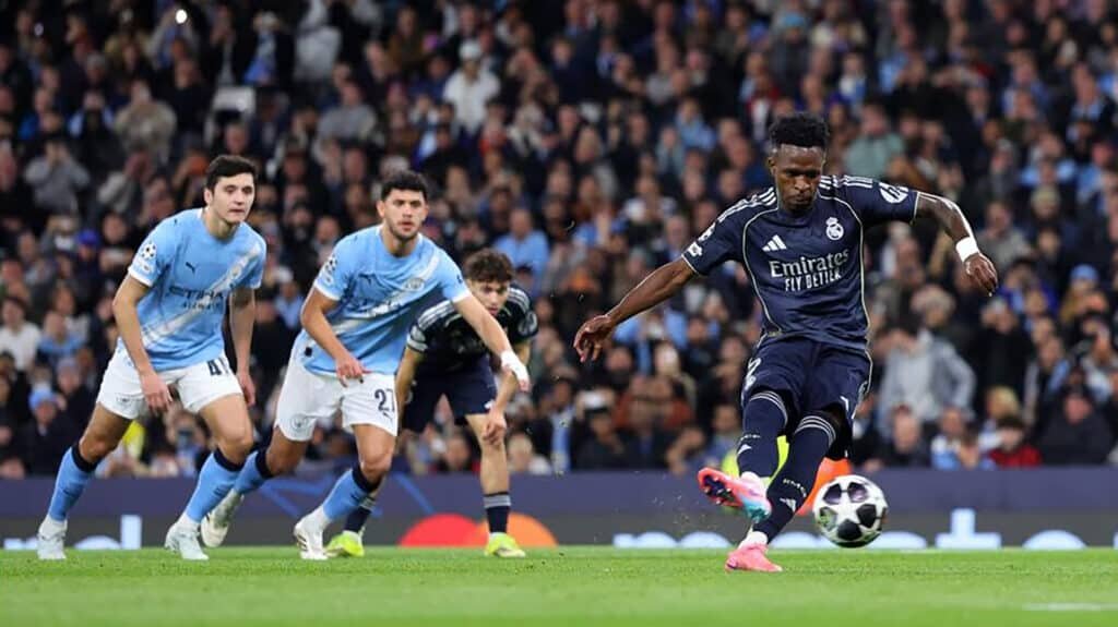 В ответных матчах 1/8 финала Лиги чемпионов УЕФА мадридский «Реал» второй раз за неделю обыграл «Манчестер Сити» – 2:1, а «Пари Сен-Жермен» вновь крупно победил «Челси» – 3:0. ЛИГА ЧЕМПИОНОВ-2025/26 1/8 финала. Ответные матчи. 17 марта ⚽ МАНЧЕСТЕР СИТИ (Англия) – РЕАЛ (Мадрид, Испания) 1:2 (1:1). Первый матч 0:3. Голы: Винисиус 22-пен (0:1), Холанн 41 (1:1), Винисиус 90+3 (1:2). Удален Бернарду Силва (МС, 20) ⚽ ЧЕЛСИ (Лондон, Англия) – ПАРИ СЕН-ЖЕРМЕН (Париж, Франция) 0:3 (0:2). Первый матч 2:5. Голы: Кварацхелия 6 (0:1), Барколя 14 (0:2), Маюлу 62 (0:3) ⚽ СПОРТИНГ (Лиссабон, Португалия) – БУДЕ-ГЛИМТ (Норвегия) д.вр. 5:0 (1:0, 3:0). Первый матч 0:3. Голы: Инасиу 34 (1:0), Гонсалвеш 62 (2:0), Суарес 78-пен (3:0), Араухо 92 (4:0), Нел 120+1 (5:0) ⚽ АРСЕНАЛ (Лондон, Англия) – БАЙЕР (Леверкузен, Германия) 2:0 (1:0). Первый матч 1:1. Голы: Эзе 36 (1:0), Райс 63 (2:0) Три мяча нужно было отыгрывать манчестерцам после крупного фиаско в Мадриде. «Кто не верит в победу, пусть остается дома», –
