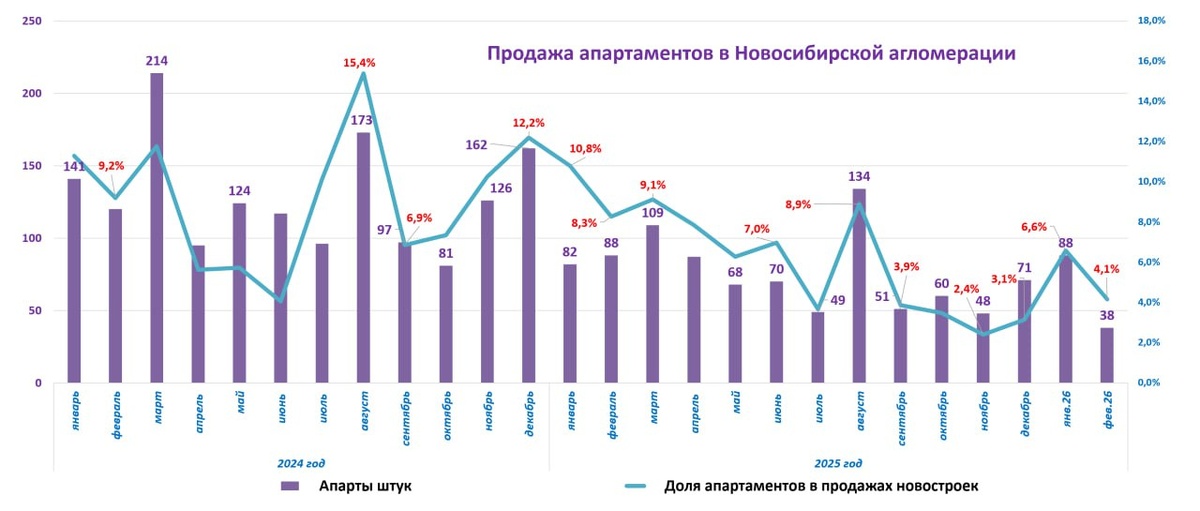 Π°ΠΏΠ°ΡΡΠ°ΠΌΠ΅Π½ΡΠΎΠ² ΠΠΎΠ²ΠΎΡΠΈΠ±ΠΈΡΡΠΊΠ° Π±ΡΠ»ΠΎ ΡΠ΅Π°Π»ΠΈΠ·ΠΎΠ²Π°Π½ΠΎ 88 ΡΠ½ΠΈΡΠΎΠ², Π² ΡΠ΅Π²ΡΠ°Π»Π΅ β Π»ΠΈΡΡ 38. ΠΡΠ»ΠΈ Π² ΡΠ΅Π»ΠΎΠΌ ΠΏΡΠΎΠ΄Π°ΠΆΠΈ Π² ΡΠ΅Π³ΠΈΠΎΠ½Π΅ Π½ΠΎΠ²ΠΎΡΡΡΠΎΠ΅ΠΊ ΠΏΠΎ ΠΠΠ£ Π² ΡΠ΅Π²ΡΠ°Π»Π΅ ΠΏΡΠΎΡΠ΅Π»ΠΈ ΠΊ ΡΠ½Π²Π°ΡΡ Π½Π° 31,5%, ΡΠΎ ΠΏΡΠΎΠ΄Π°ΠΆΠΈ Π°ΠΏΠ°ΡΡΠ°ΠΌΠ΅Π½ΡΠΎΠ² ΠΎΠ±ΡΡΡΠΈΠ»ΠΈΡΡ β ΠΏΠ°Π΄Π΅Π½ΠΈΠ΅ ΡΠΎΡΡΠ°Π²ΠΈΠ»ΠΎ 56,8%. ΠΡΠΎΠ΄Π°ΠΆΠΈ Π½ΠΎΠ²ΠΎΡΡΡΠΎΠ΅ΠΊ Π² 2026 Π³ΠΎΠ΄Ρ Π·Π° ΡΡΠ΅Ρ ΡΠ΄Π°ΡΠ½ΠΎΠ³ΠΎ ΡΠ½Π²Π°ΡΡ Π²ΡΡΠΎΡΠ»ΠΈ ΠΊ ΠΏΠΎΠΊΠ°Π·Π°ΡΠ΅Π»ΡΠΌ 2025 Π³ΠΎΠ΄Π° Π½Π° 23,7%, ΠΏΠΎ ΡΠ΅Π°Π»ΠΈΠ·Π°ΡΠΈΠΈ Π°ΠΏΠ°ΡΡΠ°ΠΌΠ΅Π½ΡΠΎΠ² ΠΏΡΠΎΠΈΠ·ΠΎΡΠ»Π° ΠΎΠ±ΡΠ°ΡΠ½Π°Ρ ΡΠΈΡΡΠ°ΡΠΈΡ β ΡΠ½ΠΈΠΆΠ΅Π½ΠΈΠ΅ ΠΊ ΠΏΠ΅ΡΠ²ΡΠΌ Π΄Π²ΡΠΌ ΠΌΠ΅ΡΡΡΠ°ΠΌ 2025 Π³ΠΎΠ΄Π° Π½Π° 25,9% , ΡΠΎ 170 Π΄ΠΎ 126 Π»ΠΎΡΠΎΠ². Π ΡΠ½Π²Π°ΡΡ β ΡΠ΅Π²ΡΠ°Π»Ρ 2024 Π³ΠΎΠ΄Π° ΠΏΡΠΎΠ΄Π°ΠΆΠΈ Π½ΠΎΠ²ΠΎΡΡΡΠΎΠ΅ΠΊ ΡΠ½ΠΈΠ·ΠΈΠ»ΠΈΡΡ Π½Π° 11,8%, Π° ΡΠ΅Π°Π»ΠΈΠ·Π°ΡΠΈΡ ΡΠ½ΠΈΡΠΎΠ² Π² ΠΊΠΎΠΌΠΏΠ»Π΅ΠΊΡΠ°Ρ