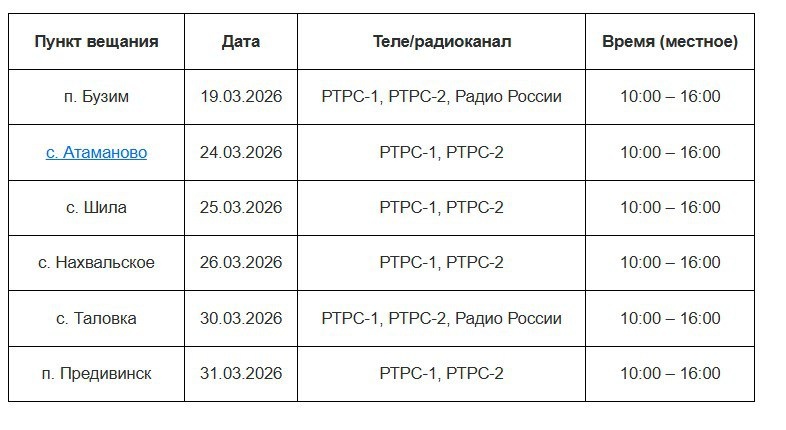 График отключений теле- и радиосигнала в Большемуртинско-Сухобузимском муниципальном округе