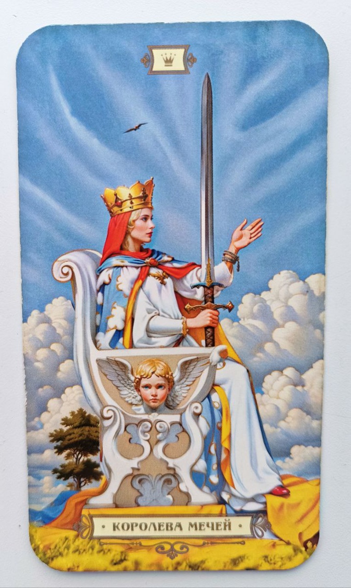 Королева Мечей Приносит с собой энергию решительности и логического мышления. Используйте свой разум в решении проблем и достижении своих целей! Не нужно стесняться, нужно вести себя свободно и непринужденно при любых обстоятельствах. Вы не должны сдерживаться не перед чем, независимо от того, в какой сфере своей жизни хотите себя проявить. Как в профессиональном плане, так и личном хватит сил для достижения своих целей.