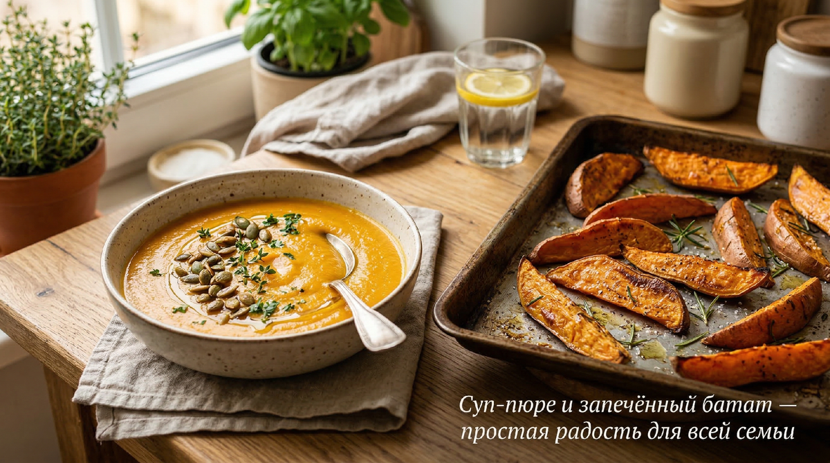 Если вы ещё ни разу не готовили батат — попробуйте. Начните с простого: сварите суп-пюре и запеките дольки. Скорее всего, после первого раза вы, как и я, включите батат в свой постоянный список покупок. А дети — дети его точно оценят, потому что природа уже позаботилась о том, чтобы этот овощ был вкусным без лишних ухищрений.