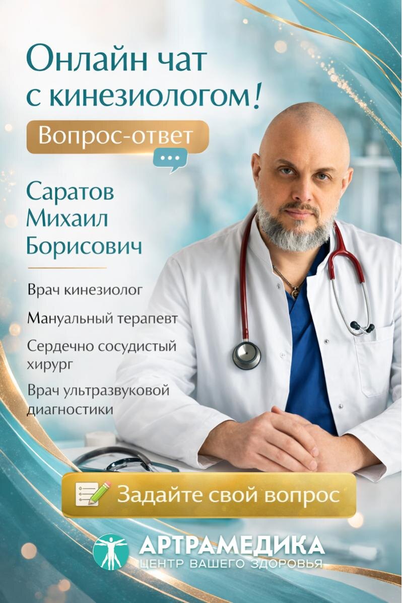врачу кинезиологу, мануальному терапевту, сердечно-сосудистому хирургу, врачу ультразвуковой диагностики, члену Международной ассоциации прикладной кинезиологии. Можно спрашивать о таких состояниях, как • боли в спине, шее, суставах • перекосы, зажимы, ощущение скованности • восстановление после травм и операций • отёки, тяжесть в ногах • нестабильность давления • когда болит в одном месте, а причина совсем в другом • как понять, нужна ли вам кинезиодиагностика .. спросите о том, что актуально для вас сегодня! Вопросы на эти и другие темы оставляйте в комментариях к этому посту до 12:00 пятницы. Михаил Борисович ответит на них в видео и аудио формате. Мы в МАХ 📍АРТРАМЕДИКА, Истра, ул. Рябкина, 41 📞 +7 (977) 000-71-81 artramedica.ru 18+ Имеются противопоказания, необходима консультация специалиста