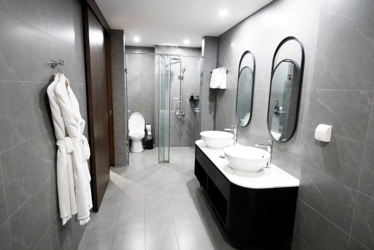 Grand Tourane Nha Trang Hotel Ну а что. Можем себе позволить лухари во Вьетнаме, пока не сезон. Ведь это — стоимость самого скромного номера в Аршане, с туалетом и санузлом на этаже. Всего 2000 рублей за ночь на двоих с вкуснейшими завтраками, видовым Infinity-бассейном на крыше, собственным бесплатным спортзалом и другими преимуществами отеля 4 звезды. Кайф же. Даже ванная была с видом на город с 12 этажа. Забронировали на Трип ком, отхватили еще и скидочку. Отель находится в 500 метрах от моря, вокруг очень развитая инфраструктура — кафе, магазины, экскурсионные агентства и так далее. Что есть в номере: Чайник, кружки, чай, кофе (пополняются). Холодильник с мини-баром, белые халаты, тапочки, сейф, телевизор в виде большой плазмы, рабочее место с креслом, пуфик для чаепития со столиком, зеркало в полный рост, фен, тумбочки, шкаф с подсветкой. В общем, в этом номере идеально всё — как и во всём отеле. Санузел укомплектован двумя раковинами, видовой ванной, отдельным душем, туалетом. По