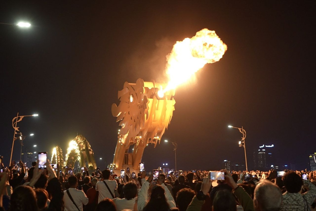 заметки от 9 января 2026г Дракон, который оживает каждые выходные: огненное шоу в Дананге, которое нельзя пропустить. Вы когда-нибудь видели, как мост превращается в огнедышащего дракона? В Дананге это не сказка, а реальность, которая повторяется каждую пятницу, субботу и воскресенье. Днём Cầu Rồng (Dragon Bridge, Мост Дракона) — обычная транспортная артерия. Но ровно в 21:00 движение останавливается, а на мосту и набережной собираются сотни людей. Все замирают в ожидании чуда. И вот оно начинается. Дракон оживает: он извергает столпы настоящего огня, которые освещают ночное небо, сопровождаясь яркой динамической подсветкой. А после этого дракон "охлаждается", обрушивая на восторженную публику у центра моста мощные потоки воды. Это одновременно захватывает, шокирует и дарит невероятный заряд радости. Наше шоу длилось 15 минут: 6 огненных и 3 водных залпа. Эмоции — через край. Полезно знать: