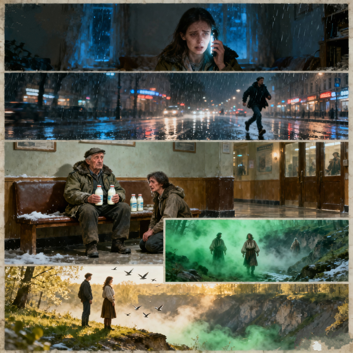 — Люди шли мимо меня. Странные. В кафтанах старинных, в лаптях, бабы в сарафанах. Они меня не видели. Как тени. А один мужик, с бердышом, прошел прямо сквозь меня. И холодно стало, Саша, так холодно, будто в могиле лежишь. А потом туман рассеялся, и я вышел. Гляжу — дома высокие, не наши, машины чудные. Пошел искать свою улицу, а нашел Галкин дом. Но Галка… — он поднял глаза на Ленку. — Ты на мать свою похожа, как две капли. Только старше. Сильно старше.