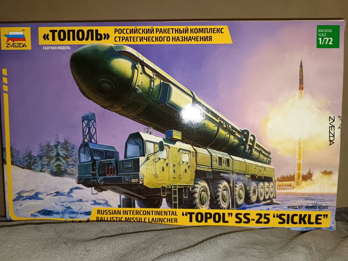 Привезли на сборку, вот такую модель. Тополь М в 72 масштабе. Но не смотрите на масштаб, модель получится, очень большой 31 см, что для данного масштаба, много, обычно от 15 до 20 см. И 300 деталей, но в сборку пойдут не все. Почему? Об этом ниже. Стандартная коробка кейс от звезды И стандартная куцая инструкция, даже без цветной схемы окраски. И два варианта сборки -походная -боевая Именно поэтому, не все детали будут использованы. Куча колес. Очень маленький литник с остеклением. Какая то она маленькая хотя судя по рисунку остекления должно быть больше, но посмотрим что будет дальше. Декали вроде и есть-но лучше бы не позорились. У моделистов обычно есть куча своих, неиспользованных. Опять же надписей должно быть на два порядка больше. Номеров тоже нет. Как нет и начинки кабин. Ну и пять литников с деталями. Из которых и будем собирать. По сути , там одна большая ходовая часть . В общем, обычная модель. Потом красить. Без окраски будет совсем грустно . Стоимость около 2500