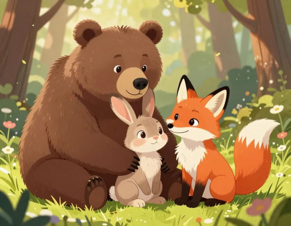Сказка «Дружба медведя, зайчика и лисёнка» Добрая сказка для малышей 2–3 лет.Читать бесплатно онлайн. В одном солнечном лесу жили три друга: большой добрый Медведь, шустрый Зайчик и хитрый Лисёнок. Они каждый день играли вместе: то в прятки, то в догонялки, то просто гуляли по тропинкам. Однажды утром Зайчик прибежал к друзьям очень взволнованный: