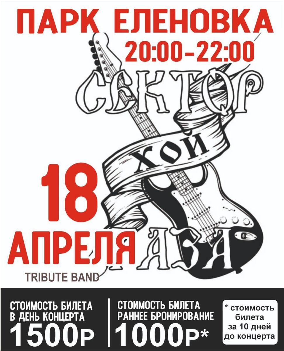 🤘 18.04.2026 – встречайте кавер-группу Сектор Газа, которая исполнит лучшие хиты Юрия Хоя! Готовьтесь к зажигательным песням, которые вы