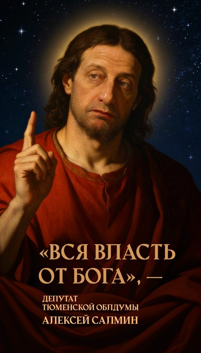 «Вся власть от Бога», заявил тюменский депутат — «Бог попускает власти быть», ответила церковь. Депутат Тюменской облдумы Алексей Салмин призвал граждан не критиковать власть, ведь они, возможно «не доросли» до понимания: