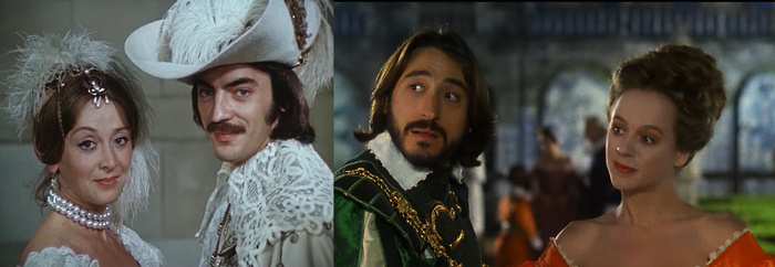 Более того, в какой-то момент исполнитель роли Фернандо Конде берется за борта своего одеяния точно так, как это сделал Джигарханян! И как хотите - наш фильм получился более итальянским, чем испанский.))) Ну а если без шуток, то наш фильм выигрывает просто всухую по всем пунктам. И по костюмам, и по игре актеров, и по эмоциональности, и по комедийности - чего стоит песня маркиза Рикардо в исполнении Николая Караченцова и его улыбочка фирменная.